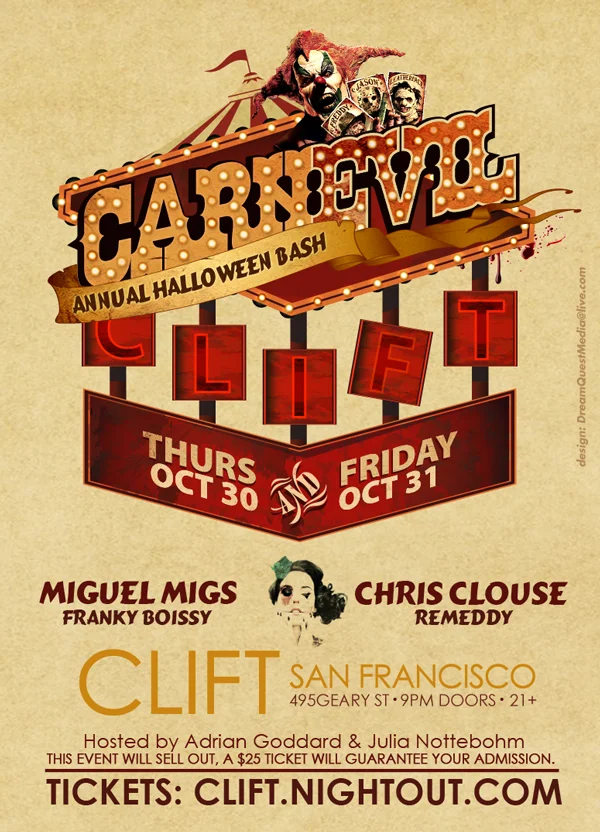 For Halloween this year I'll be DJ'ing at the Redwood Room's annual Halloween bash inside the iconic Clift Hotel in downtown SF. I'll be on the decks alongside the talented Chris Clouse. Tickets are available at the link below and check out the trailer below from last year's madness.